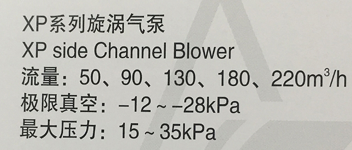 Flow:50、90、130、180、220m³/h